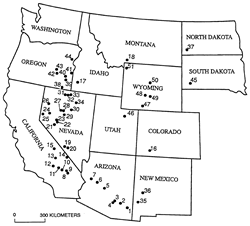 Erionite is a naturally occurring mineral that belongs to a group of silicate minerals called zeolites. It is usually found in volcanic ash that has been altered by weathering and ground water. Like naturally occurring asbestos, deposits are present in many Western states (see map).1 Erionite can occur in a fibrous form. Disturbance of this material can generate airborne fibers with physical properties and health effects similar to asbestos. For example, it has long been known that residents of some Turkish villages where erionite-containing rock was used to construct homes have a remarkably high risk for development of malignant mesothelioma.2