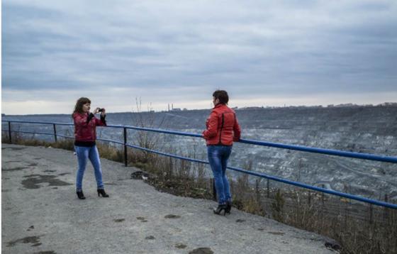 ASBEST, Russia — On a chilly afternoon earlier this week, an SUV parked at the edge of an enormous hole in the ground in the town of Asbest, Russia. Over six miles long and one thousand feet deep, it is the world's largest open-pit asbestos mine. Two young women in brightly-colored down jackets stepped out of the car to have a smoke and enjoy a panoramic view of what had been the town of Asbest's main industry and biggest source of pride for more than a century. Delighted, the women watched from afar as trucks and bulldozers, tiny as toys in the distance, excavated the mineral on the bottom of the mine, which was then loaded into wagons and transported along railroads. Stairs carved into the pit's earthy sides and layer after layer of roads and rails stretched towards the horizon, almost replicating, on a much larger scale, the striated look of asbestos fiber itself.